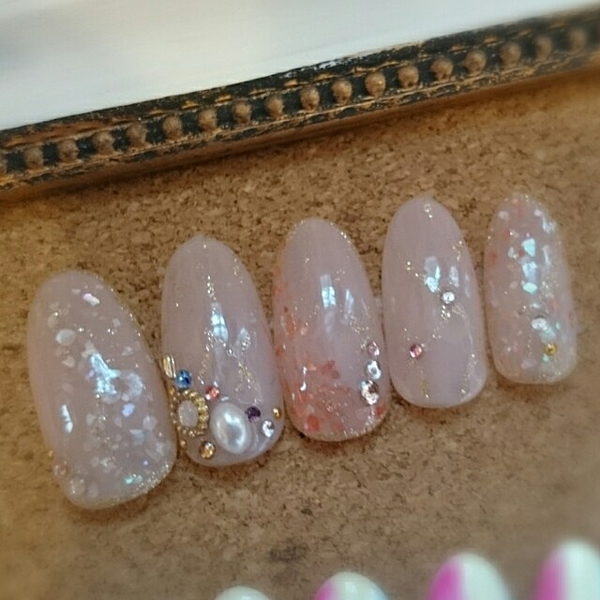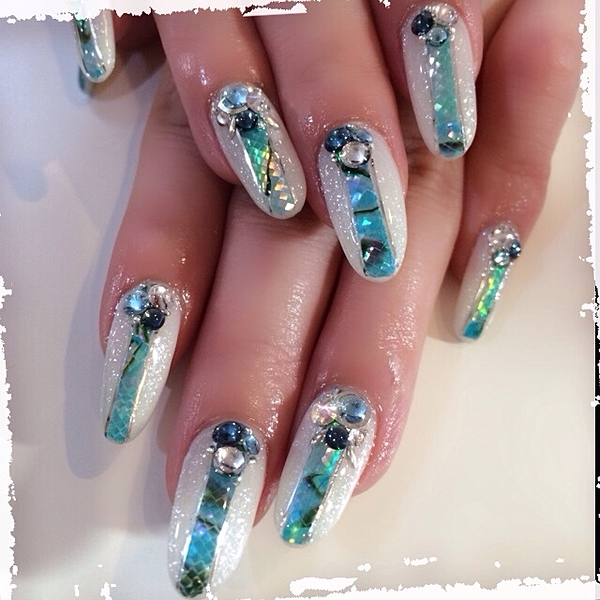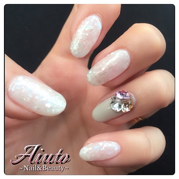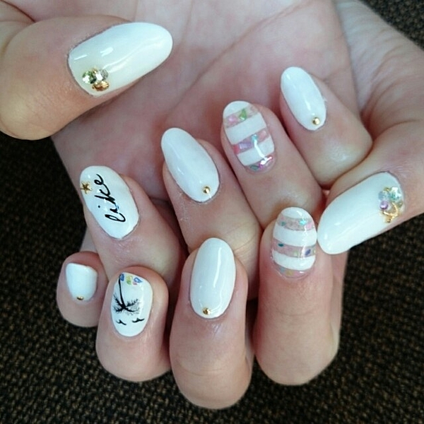 ホワイトのグラデーションにシェルをかさねてキラキラに♪