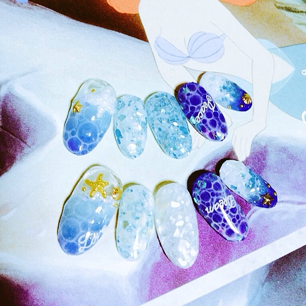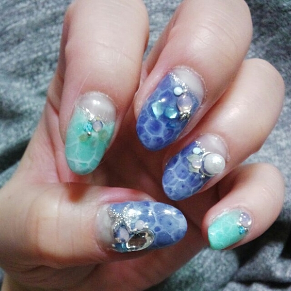 エメラルドグリーンで海のあわあわネイル