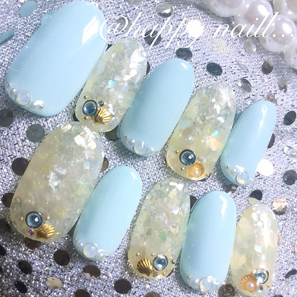指先のキラキラで夏を楽しむ♪シェルをつかったネイルデザイン
