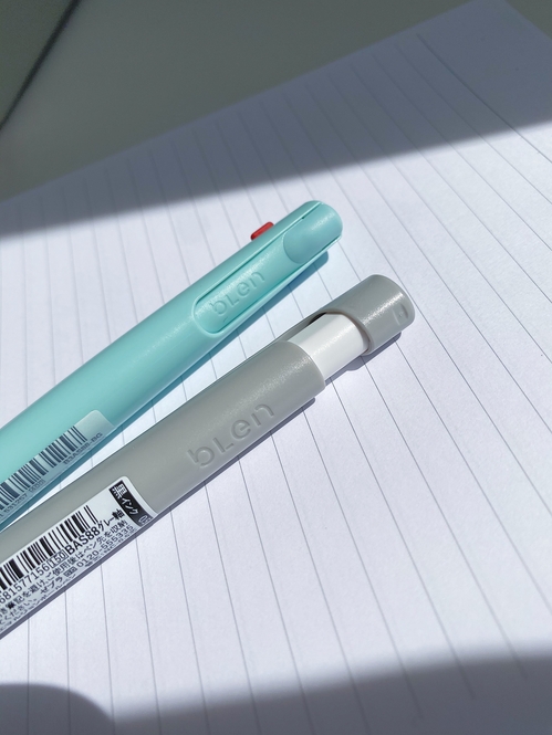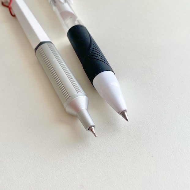 ジェットストリームの0.5mmと並べてみると、細さだけでなく先の形もなんだか鋭くなっています。