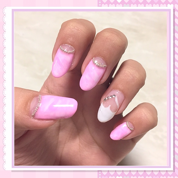 ストーンもさりげないピンクでかわいく仕上げて・・