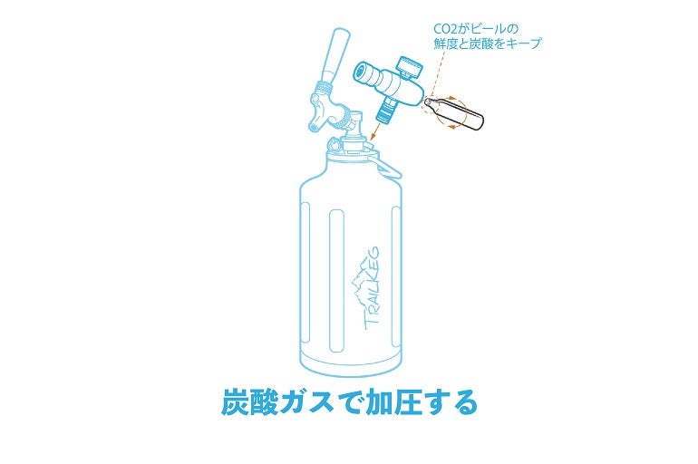 この商品はCO2カートリッジを使用できる加圧式のグラウラーで、鮮度抜群のビールを注ぐことが可能。