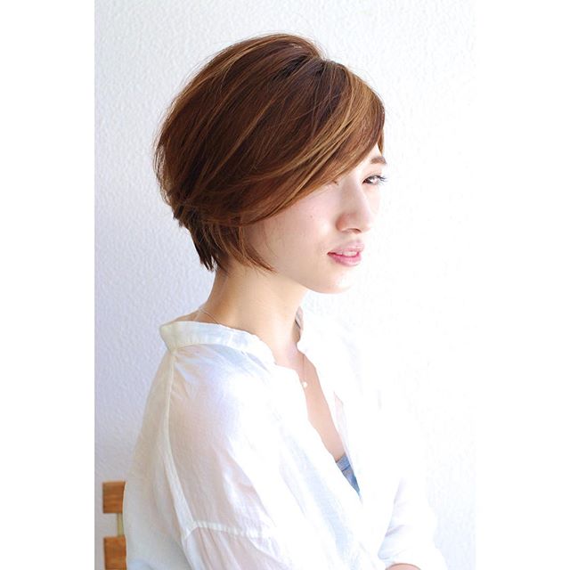 マッシュフォルムにカットされたショートヘアは頭を小さく見せるので、スタイルも良く見せられる嬉しい髪型です。