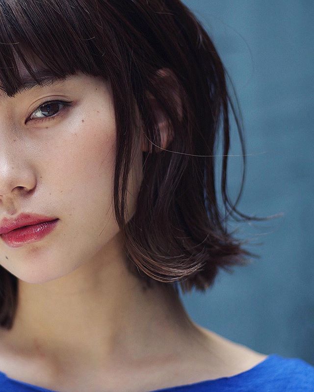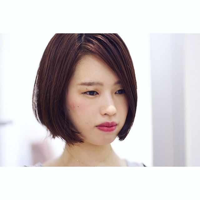 センターより横に分けてワンレングスにカットされたマッシュボブ。カラーリングも良いですし、黒髪をいかしても知的な雰囲気の髪型に仕上がります。