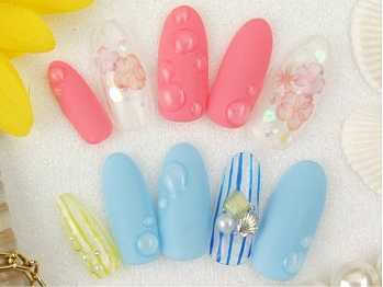 雨上がり、花びらの上にきれいな雨粒を発見して奇麗だな〜って思ったことありませんか?そんな奇麗な水滴をネイルにも取り込んでしまいましょう♩梅雨から夏という時期にぴったりの水滴ネイル。花柄と合わせるととても幻想的で、サマーデザインと合わせるとまるで海からあがったようなデザインでとてもおすすめです!