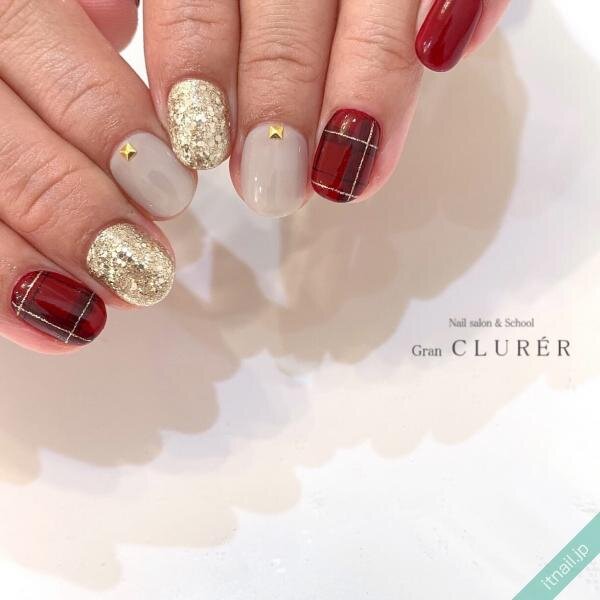 大人っぽいイメージが強い赤ネイルですが、チェック柄のデザインはガーリーな表情。ころんとしたフォルムのショートネイルに大人かわいくまとうのがオシャレです。グッドガールな指先をスタイリッシュにアピールして。