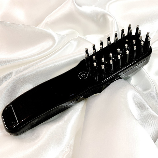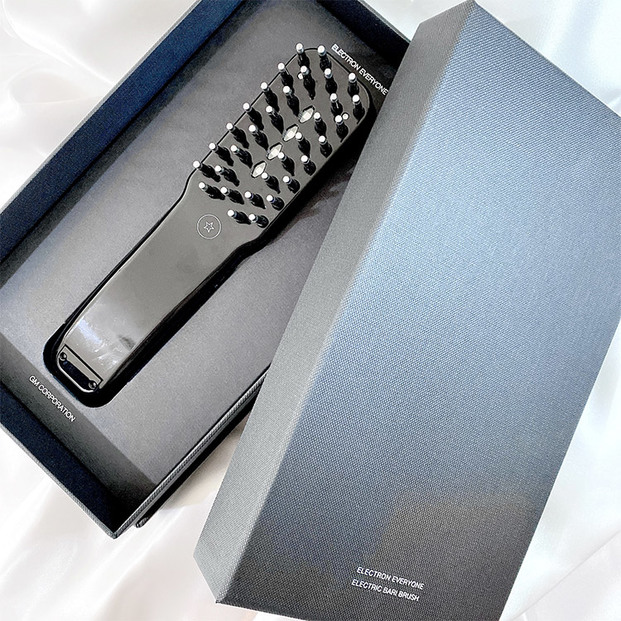 巷で話題の美容家電。その名も「デンキバリブラシ」!ネーミングからインパクト大ですね。見た目はヘアブラシのような形ですが、このブラシの先端から低周波が発生し、ヘアからフェイス、デコルテなど全身にアプローチすることができる美容家電です。