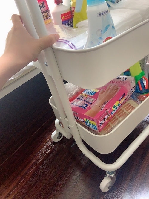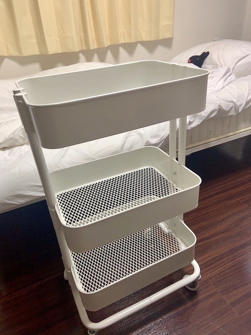 今までダンボールにそのまま突っ込んでしまっていたのですが、このワゴンに出会って劇的な環境改善を遂げました…。