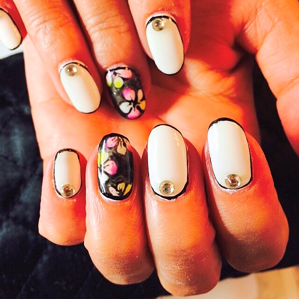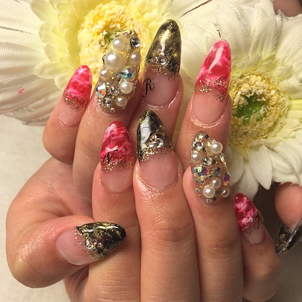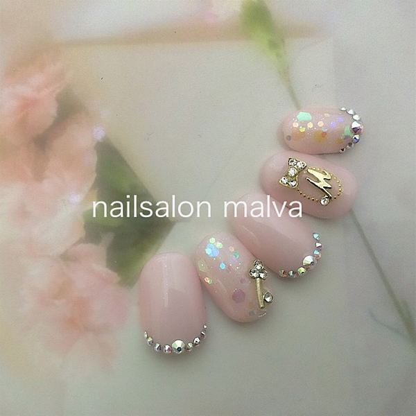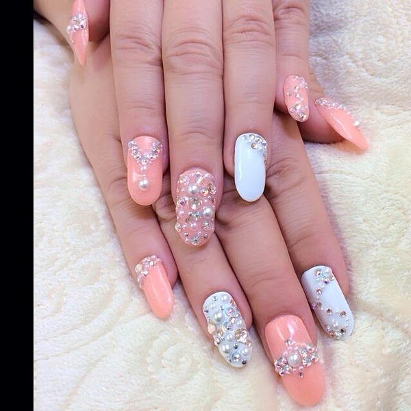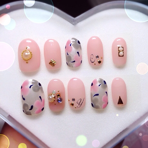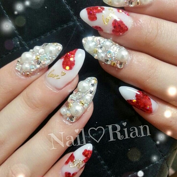 細かい3Dネイルも多く使用され華やかな印象を与えてくれています。