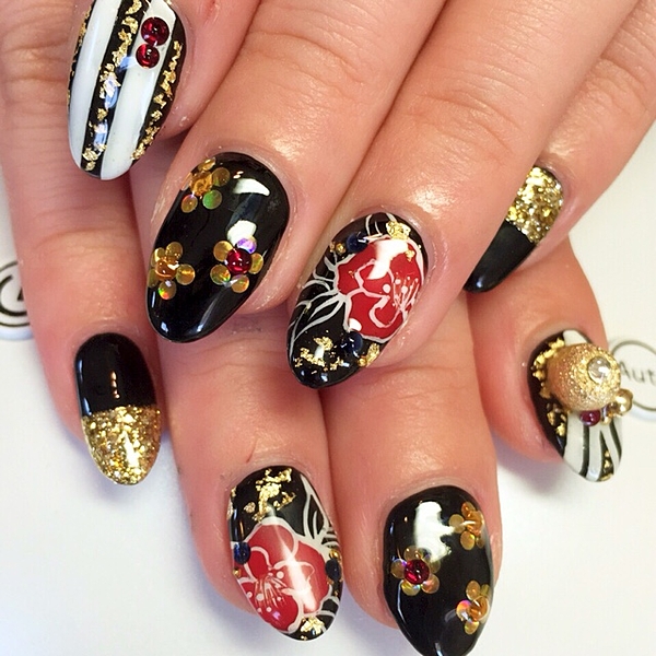 赤・黒・金は鉄板の良く合う色合いなので普段ネイルをしない方も失敗せずに出来るのではないでしょうか。