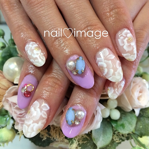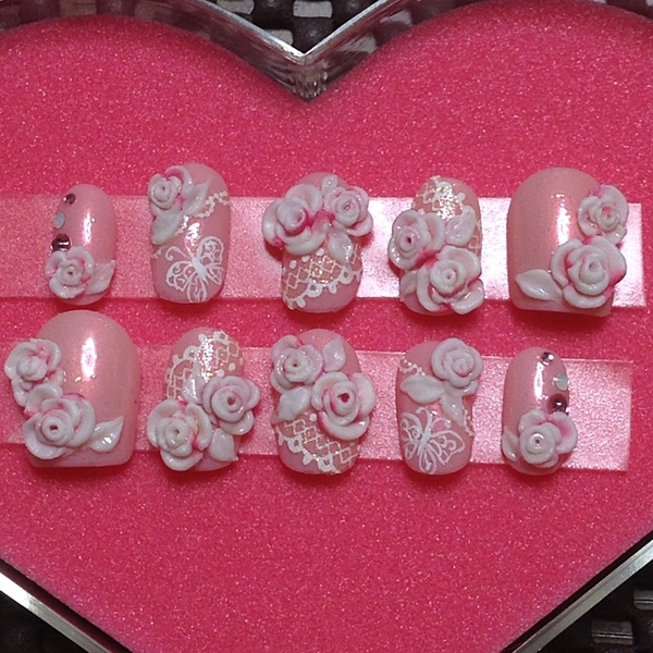 ベースを半透明にする事で、レースのデザインが良く見え綺麗な印象を与えてくれています。3Dを合わせる事で華やかさもプラスされ、女性らしいデザインへと仕上げる事が出来ます。