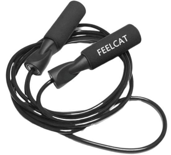 FEELCAT「なわとび FC1801」の最大の特徴は、速跳びがしやすいベアリング構造でありながら、足にロープが当たっても比較的痛みが少ないビニール製だということ。これで失敗を恐れずになわとびに集中することができます。