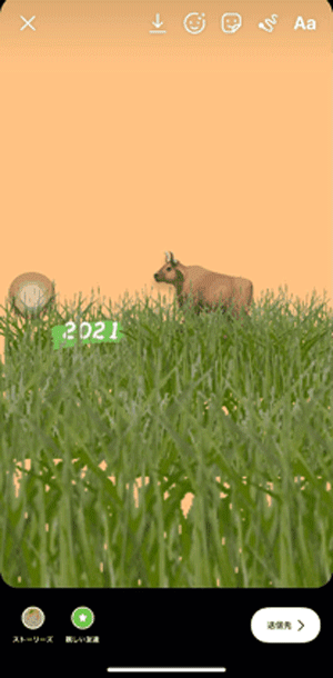 2021年の干支は「牛」ですが、そんな牛を使ってストーリーでかわいく新年の挨拶を投稿してみませんか?