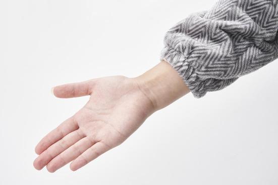 袖口にゴムを通していて手元がスッキリしているため、キーボードのタイピング作業がスムーズ。袖が手にかからないので家事などの作業もしやすいです。