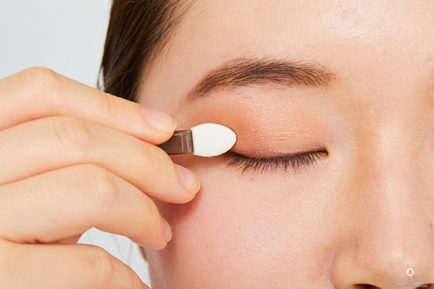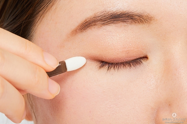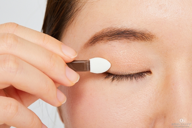 まずは左上のカラーをまぶた全体にのせる。