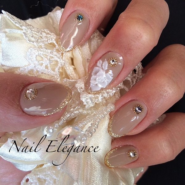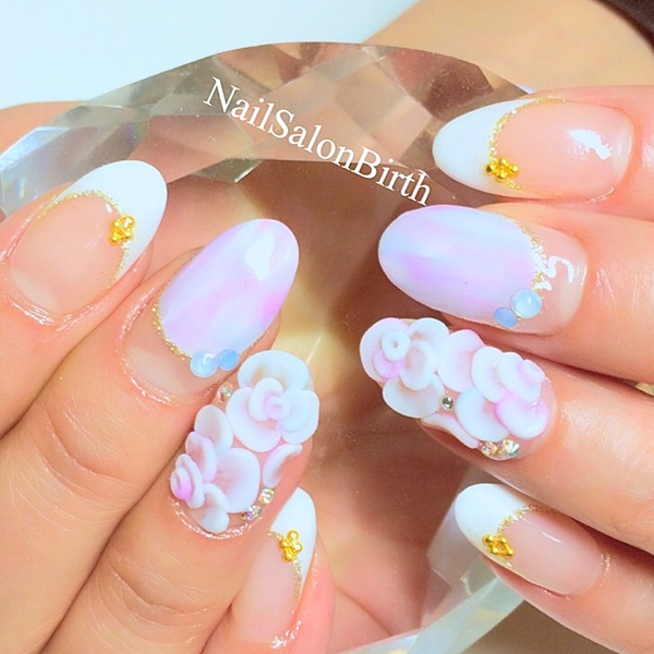 3Dネイルに、パールを組み合わせると、清楚な雰囲気UP!