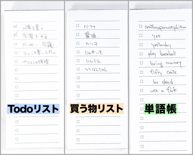 Todoリストやスーパーで買う物リスト、単語帳なんかにも使える!