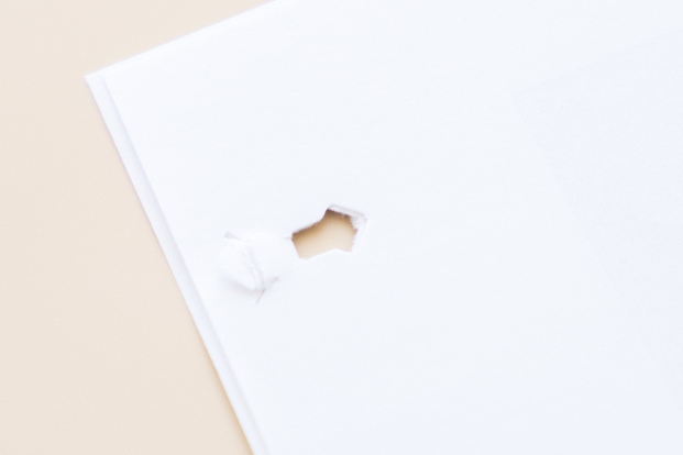 このように紙に穴を開けて織り込む構造になってます!針なしでとめられるのすごい。