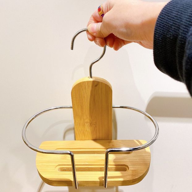 バンブー素材のシェルフハンガー。簡単に壁収納ができる優れもの。シャンプーを置くだけでなく、お気に入りのぬいぐるみやグッズをお部屋に飾るのも良し。