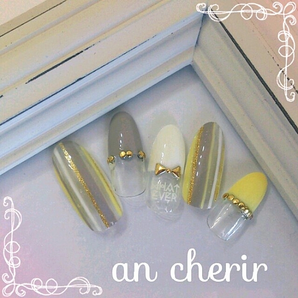 イエロー1色塗りも、根元にはさりげなくゴールドラメを入れて・・