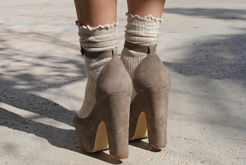 Next trend?〈ヒール+同系色ソックス〉で作るショートブーツ風アレンジ♡