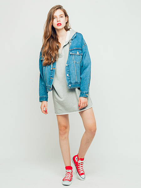 きりっ放しのようなBIGサイズのパーカーワンピ。メンズライクですがワンピースなのとVネックが女性らしくおすすめです。