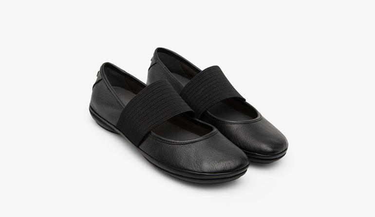 スペイン・マヨルカ島生まれのシューズブランド「カンペール」の、軽量で安定感抜群のフラットシューズ。柔らかいレザーが足にぴったりとフィットし、甲部分の太いゴムのストラップが足をしっかり支えてくれる。スカートやワンピースの装いにぴったりのクラシカルなデザイン。20,350円(税込)