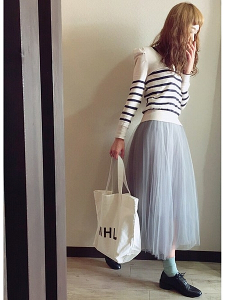1枚は押さえておきたいチュールスカート!! Tシャツ合わせはもちろんのこと、カジュアルでもフェミニンにも なれる優秀ITEM。