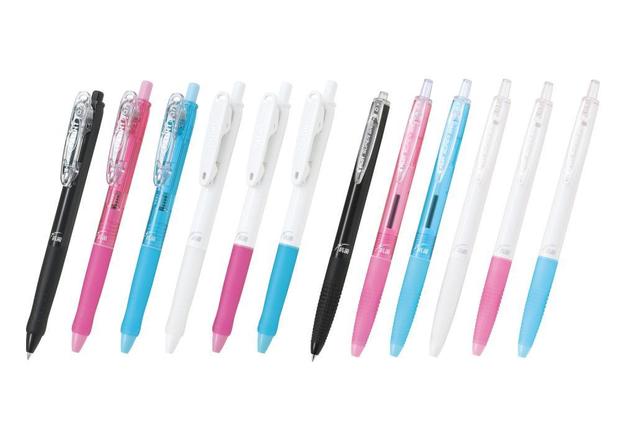 ボディカラーはどちらもブラック、クリアピンク、クリアブルー、ホワイト、ホワイトピンク、ホワイトブルーの6色展開。ボール径0.7mmの細字タイプで、インキ色は黒です。
