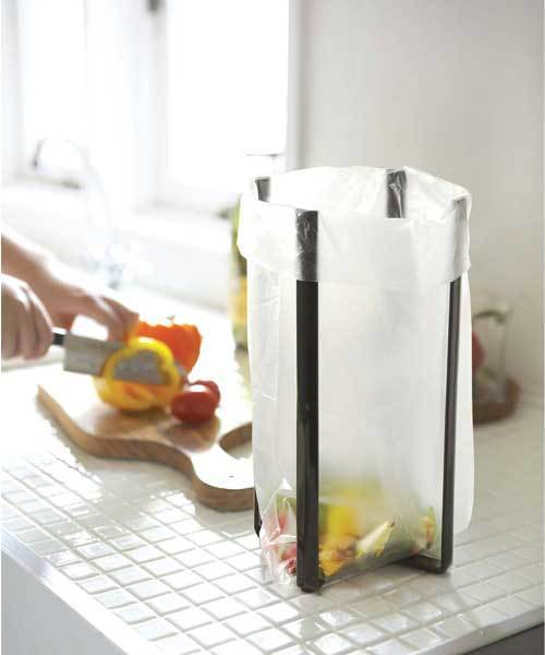 三角コーナーは、あると便利ですが、後片付けが面倒だったり、嫌なヌメリが付いてしまって不衛生なことも。ポリ袋を掛けて使うエコスタンドなら、後片付けも簡単で使わない時は、畳んでコンパクトにしまえます。