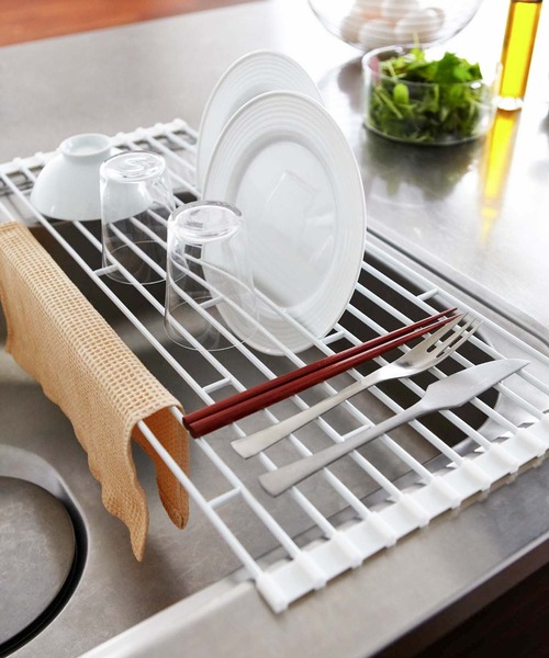 洗った食器を乾かしたり、調理スペースとして使ったりと何かと便利な水切りラック。最大の魅力は、水切りカゴと違って使わない時は、丸めてコンパクトに収納できること。狭いキッチンでも邪魔になりませんよ。