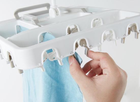 ピンチなどを使わずに、小さいタオルや下着などの小物類も引っ掛けるだけで干せるのでラクです!