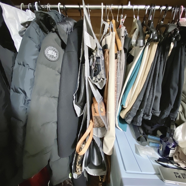 バッグってどこに収納していいか分からなくて、クローゼットの中で散乱している私。