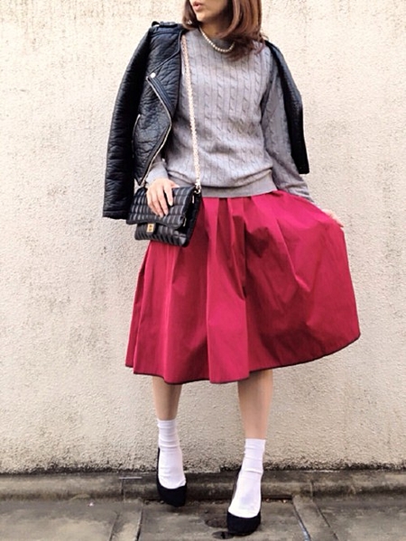 赤のスカートで女性らしさアップなコーデ◎