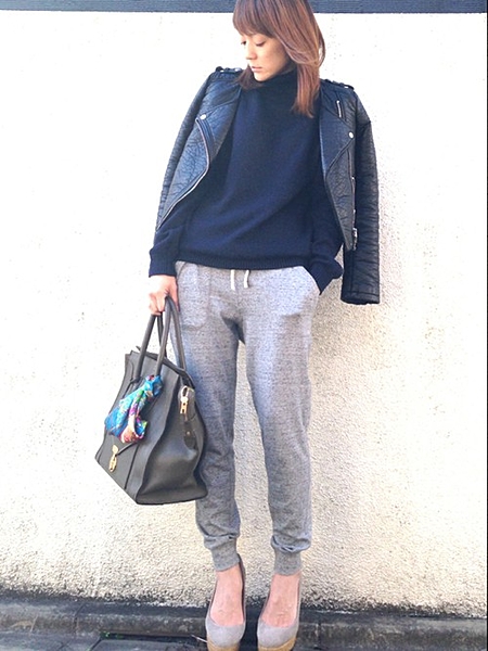 スウェットパンツで抜け感を。