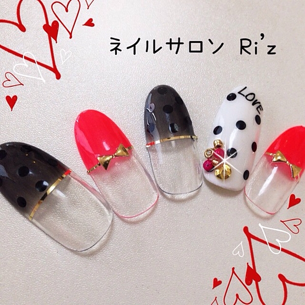 洋服のフリルみたいな変形フレンチ。色やモチーフがファンシーなデザイン。ロリータファッションによく合いそうなデザイン。