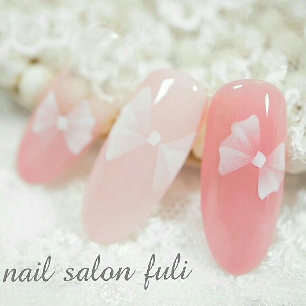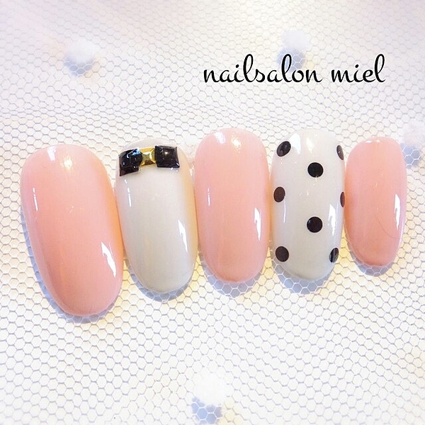黒いリボンが大人っぽい”お嬢様系ネイル”