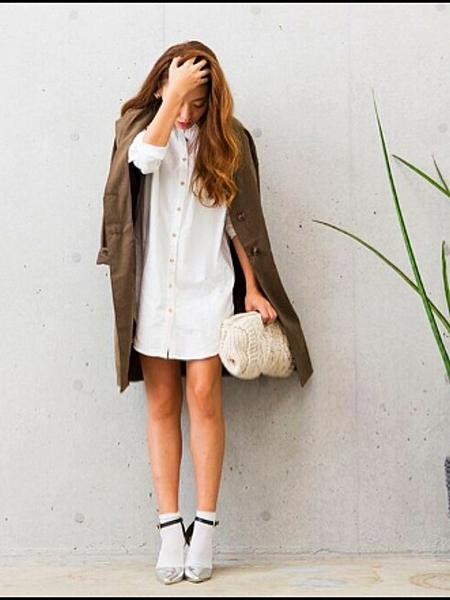 白のシャツワンピの上に