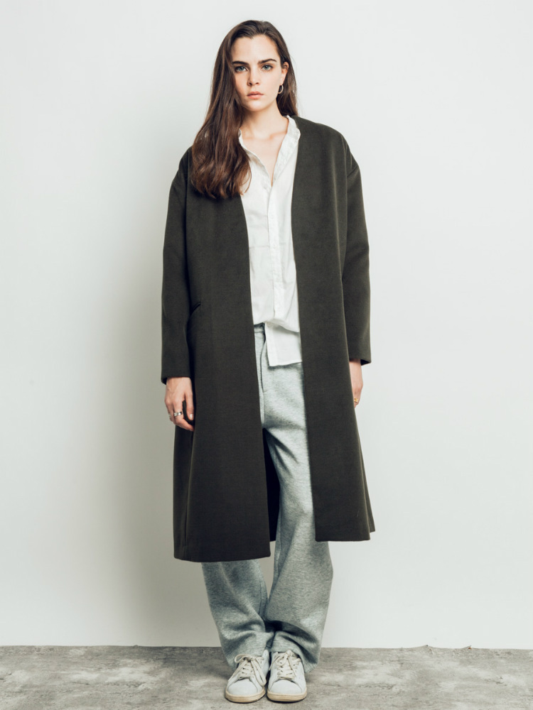 ダボッとしたカーキのチェスターコート