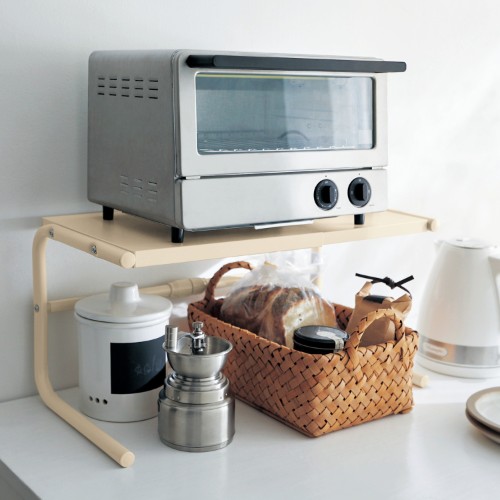 スペースを有効活用したいお部屋に最適のトースターラックは、なんと伸縮式!30~50cmの長さに調節でき、耐荷重は約15kgまでなので炊飯器も置けちゃいますよ。