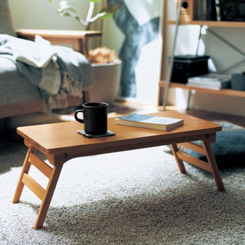 食事や読書、ちょっとした書き物など、使いたいときにさっと広げられるミニテーブルはとっても便利!折りたたんでも6cmとスリムなので、邪魔になりません。