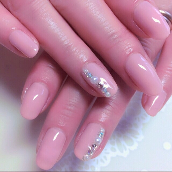 あわいベビーピンクで1色塗りにしたシンプルネイル