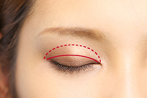 赤線のところにチョコレートカラーのアイシャドウを。