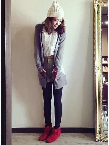 ボルドーとグレーの組み合わせは、秋のコーデの鉄板!