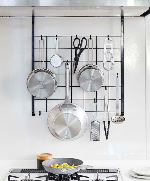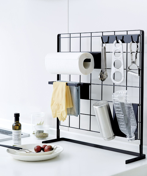 シンク上やコンロ横のスペースなど、ちょっとした空間を有効に活用できる「自立式メッシュパネル」。