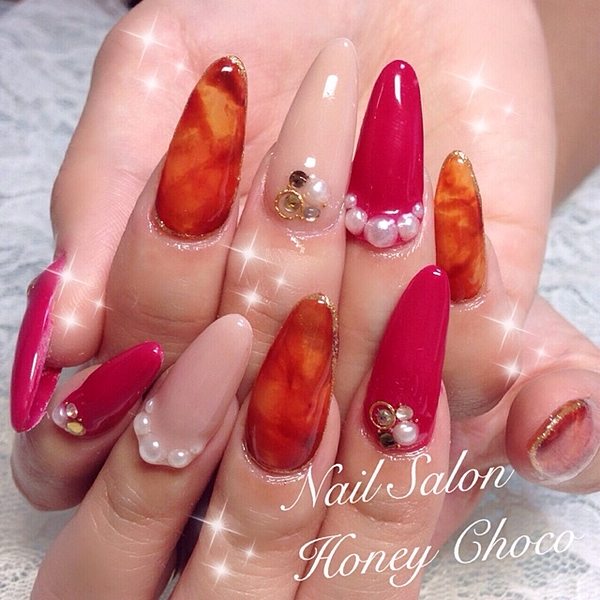 秋になってやりたい赤ネイル。赤ネイルと一言でいっても色んな「赤色」があります。明るい赤、暗い赤、紫のような赤。大人っぽい人、女の子らしい人、みんな似合う赤は違うのです。あなたに似合う、好きな赤を探してみて。