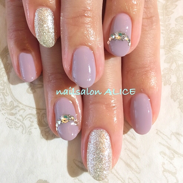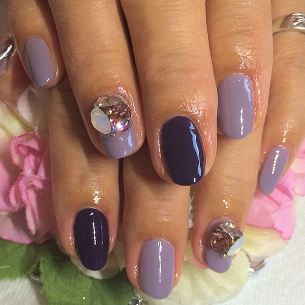 グレーの強めなパープルも大人可愛い指先に♡