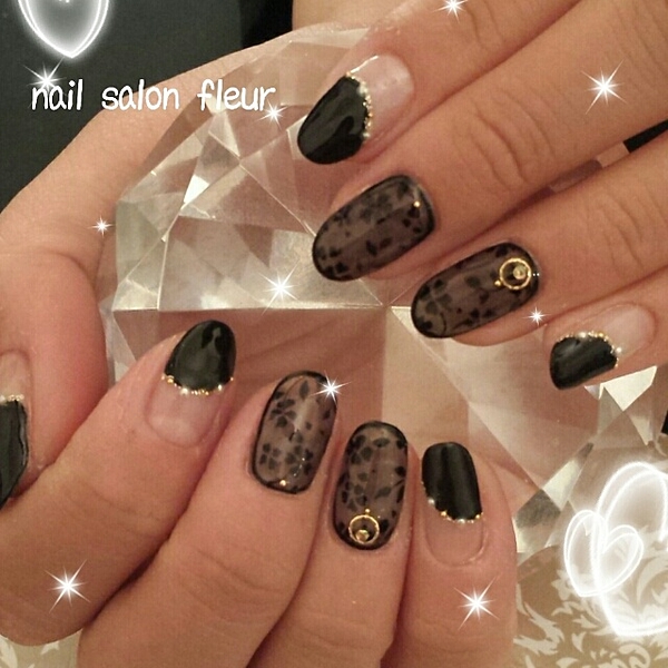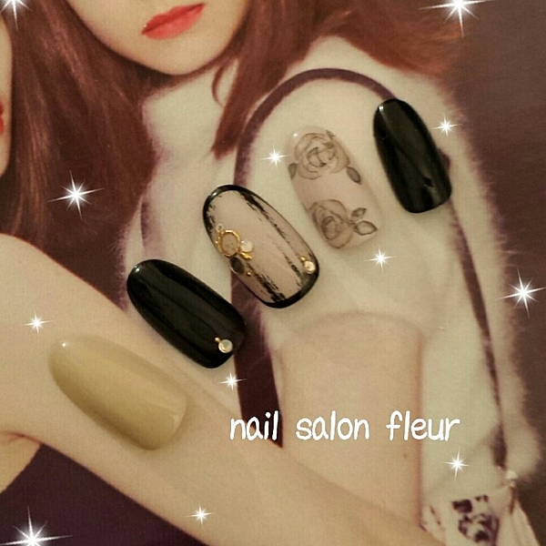 春とは違うシックな花柄にときめく♡黒で作る大人のフラワーネイル