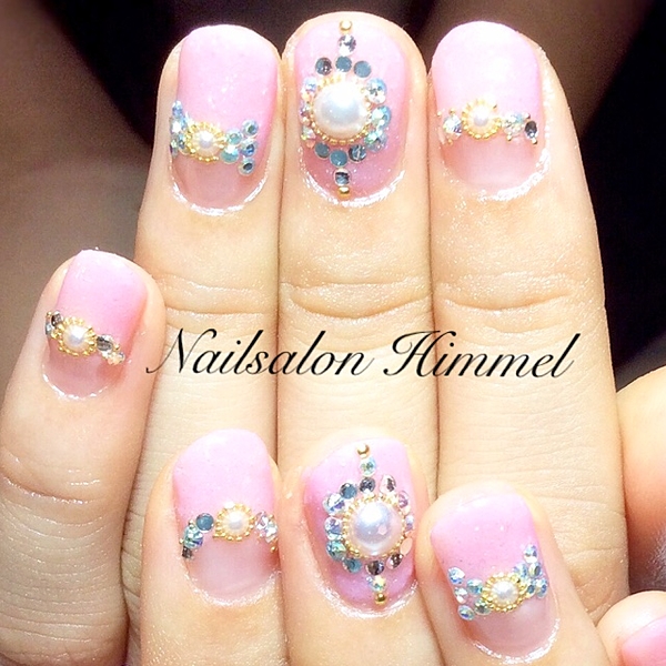 変形フレンチにパール埋め尽くしたデザイン。