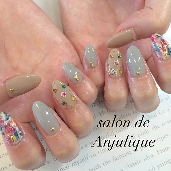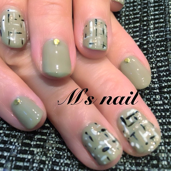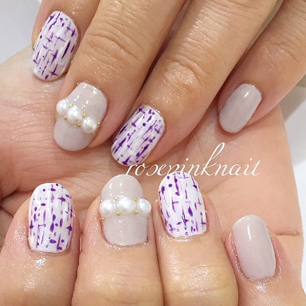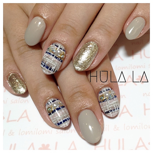 (nail) グレー系カラーでつくるツイードデザイン